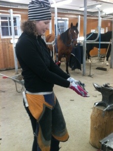 Idag har vi haft fortsättning på vår hovkurs. Vi har riktat skor och slagit på den på en hov på ett löst underben. Superbra att kunna öva på en ”lös” hov! Att rikta en hästsko är inte helt enkelt och kräver mycket övning. Nästa vecka ska vi prova att rikta en varm sko, förhoppningsvis blir det lite enklare att förstå hur järn beter sig. För som vi konstaterade, vi har ingen känsla för just järn!