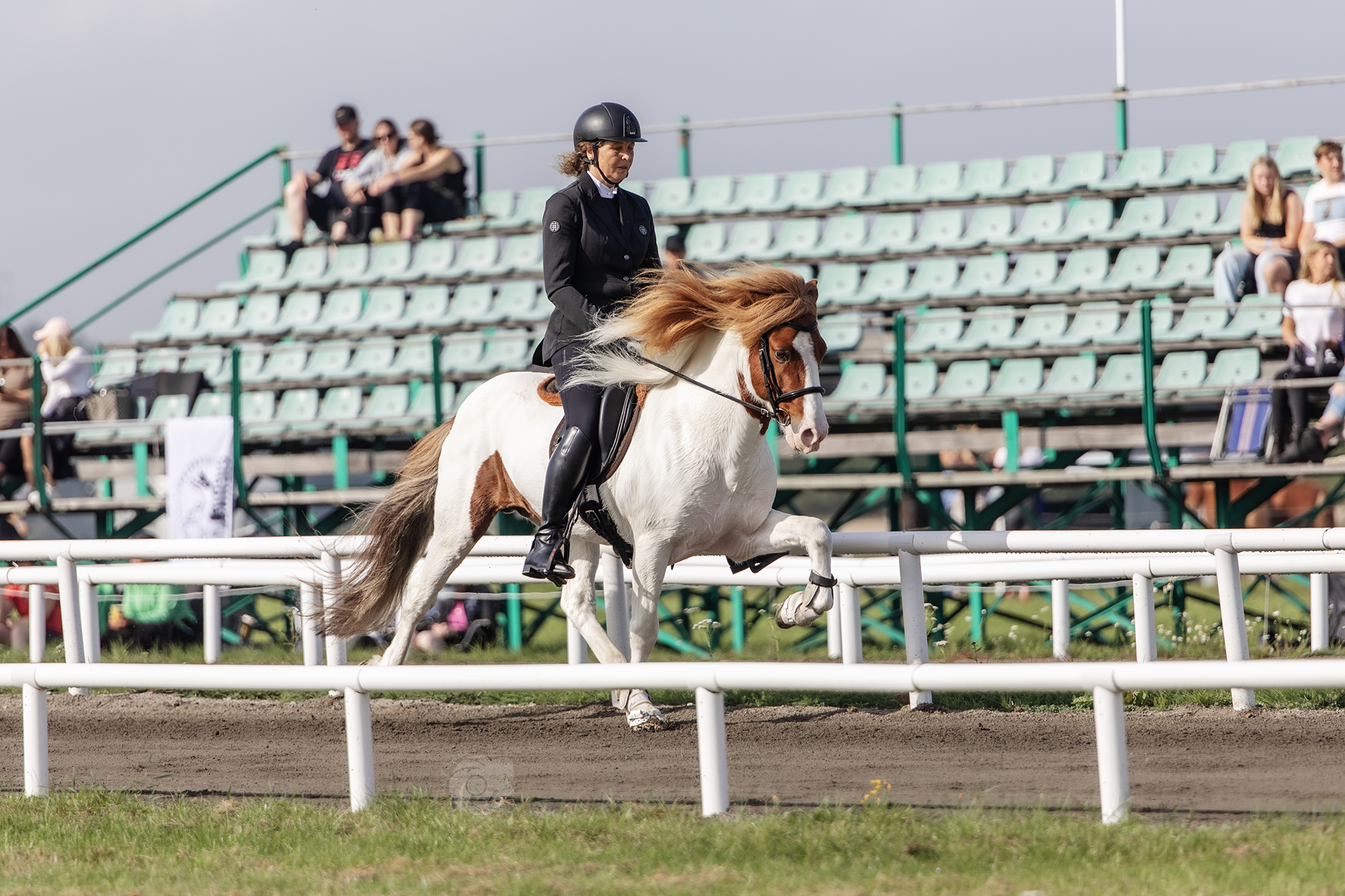 | Exteriör Huvud 8.5 Välformade öron – Stora öppna ögon Hals-Manke-Bog 8.5 Välrest – Smidig – Hög manke – Lågt ansatt hals – Langar herðar Rygg och kors 8 Bra rygglinje – Spetsigt kors – Takformat kors Proportioner 8.5 Rektangulär – Högbent Benkvalitet 8 Kraftiga senor Benställning 7 Framben: Uttåad – Trång Hovar 8 Kraftiga trakter Man och Svans 7.5 Exteriör 8.16 | Ridegenskaper Tölt 8 Trav 8 Pass 8.5 Bra takt Galopp 7.5 Saknar sväv Spirit 8.5 Mycket framåtbjudning Helhetsintryck 8 Skritt 8 Ridegenskaper 8.12 Sakta tölt 8 Sakta galopp 7.5 |